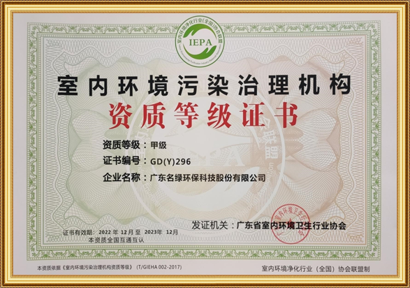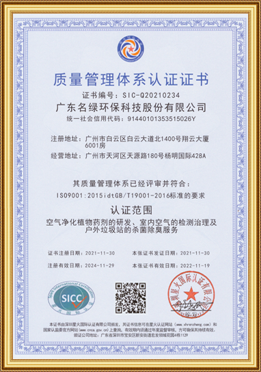 名綠環(huán)保成立于2015年,是國內(nèi)早期從事室內(nèi)環(huán)境污染治理的先行企業(yè),經(jīng)近5年的發(fā)展,已形成集研發(fā)、治理、銷售、服務(wù)一體化的專注室內(nèi)空氣凈化的環(huán)保公司。獲得數(shù)十項國家專利、榮譽和資質(zhì)體系認證。